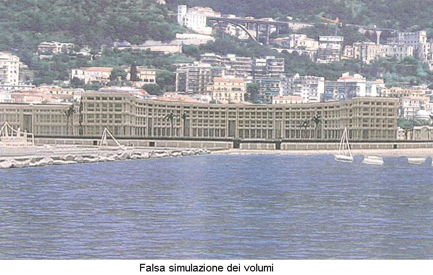 "Registriamo e segnaliamo una nuova falsa rappresentazione di Piazza della Libertà in un fotomontaggio irreale. Sbagliate le proporzioni. Falsata la prospettiva. Si cancellano le "porte urbane" dell'edificio. Si cancella il contesto per rendere non percepibili proporzioni reali. Si cancella la profondità della piazza. Si rappresenta addirittura il pavimento della piazza obbliquo rispetto al Lungomare. Lo scopo è sempre quello di dare l'immagine di una muraglia diritta".